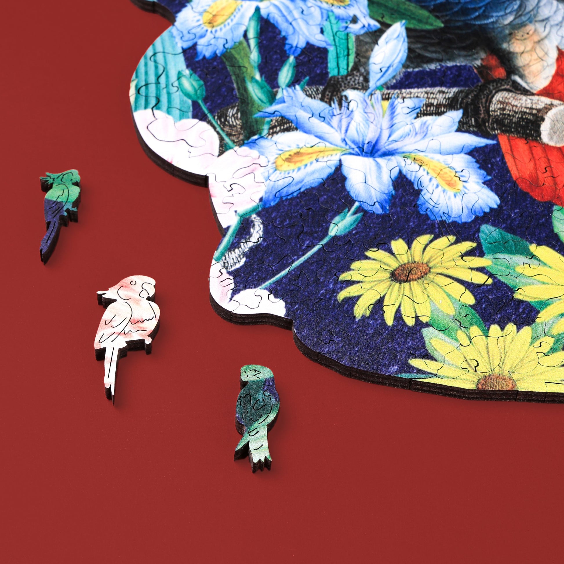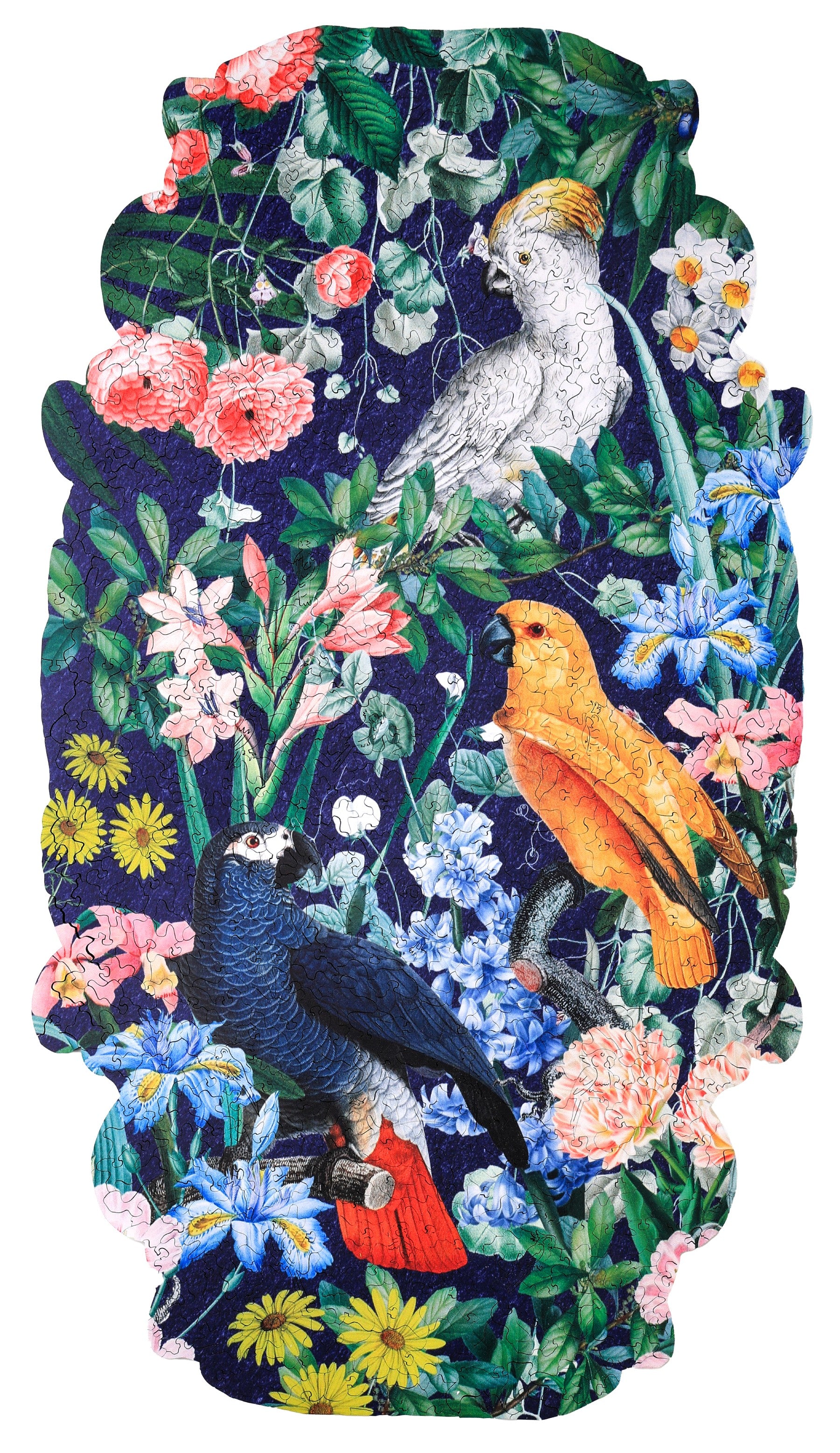 A garden in full chorus. Botanical Rhapsody gathers parrots and cockatoos among lilies, irises, and climbing vines, all set against a rich twilight violet. The shaped edge follows the sweep of foliage, so every curve feels like another petal to place. As you build, feathers meet flowers, colors soften and deepen, and little discoveries appear where stems and wings entwine. It’s a slow, lovely crescendo - piece by piece - until the last click reveals a bouquet you’ll want to keep on display.
